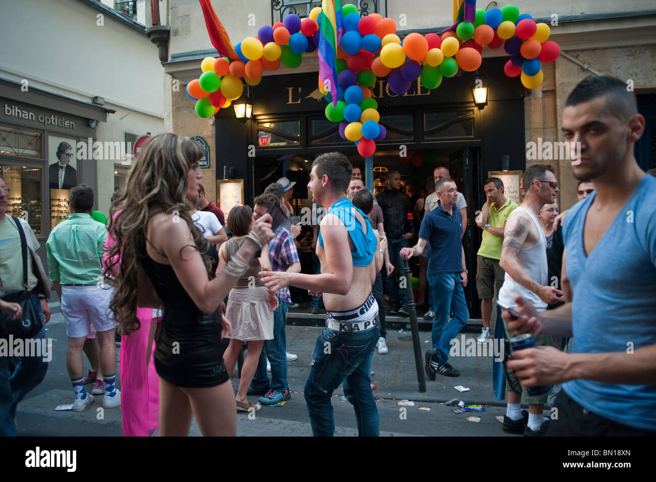 Tag : Paris France Large Crowd People Celebrating After Lgtb Gay Pride In The Marais District