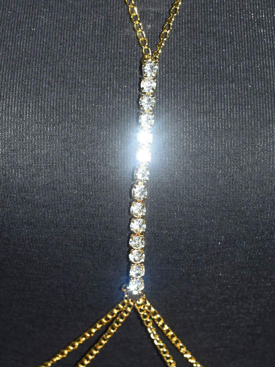 Pc Minimalist Chest Chain With Shiny Rhinestones Sexy Beach Body Jewelry For Lingerie Show is a popular picture for sexy and hot.
