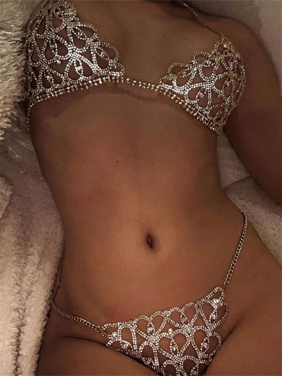 Pc Sexy Rhinestone Flower Shaped Body Chain For Women Beach Bikini Accessory Shein Usa is a popular picture for sexy and hot.