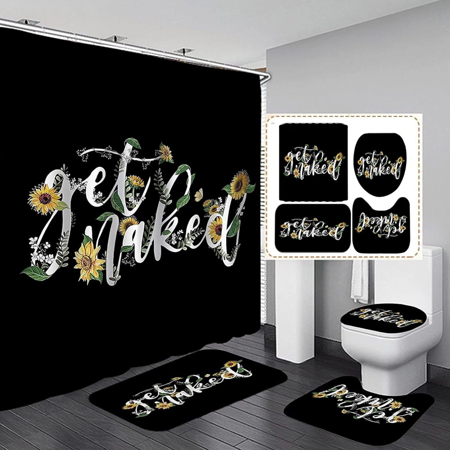 Pcs Get Naked Sunflower Shower Curtain Sets Floral Green Bathroom Set Decor With Non Slip Rugs pictures has 500 x 400 · 50 kB · jpeg.
