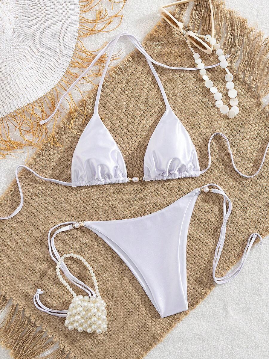 Tag : Pcs Set Solid Color Sexy Tie Back Bandeau Bikini Swimsuit For Beach Vacation Spring Summer