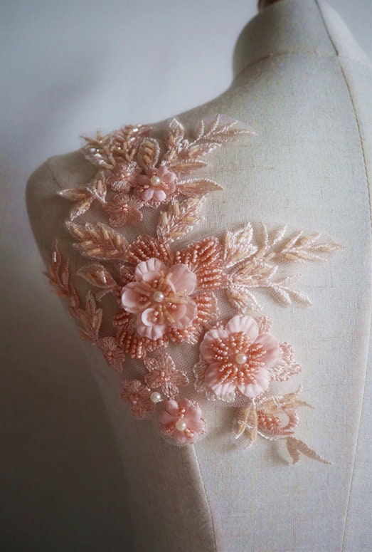 Peach Pink D Heavy Beaded Lace Applique With D Florals Blue Nude Pink Navy Bridal Lace is a popular picture for sexy and hot.