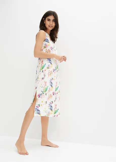 Pen Nattkjole Med Blonde I Utringningen Av Bomull Naturhvit Blomstret 47058