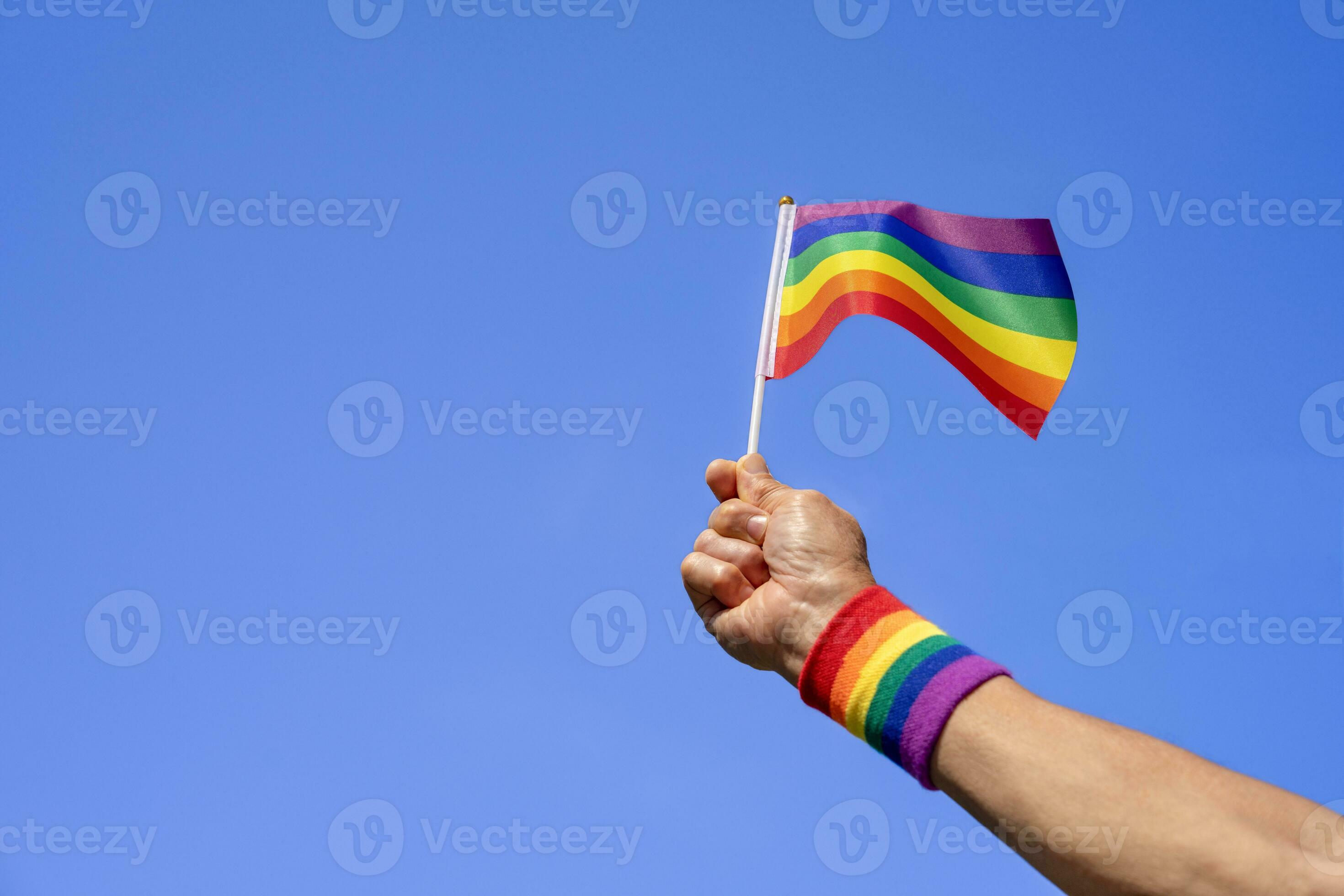 Tag : People Hand Holding Lgbt Colorful Rainbow Gay Flag Background Blue Sky Concept Of Lgbtq
