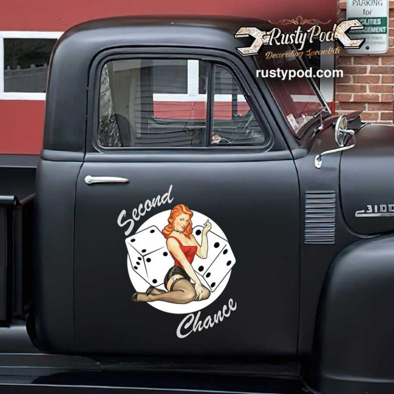 Tag : Personalized Dice And Pin Up Girl Lettering Bumper Sticker Hot Rod Door Art Sticker