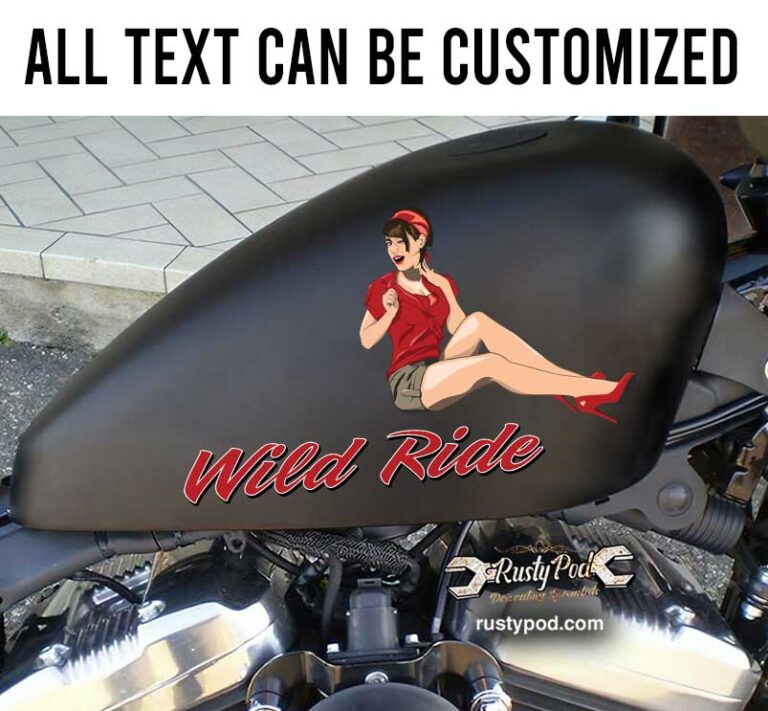 Tag : Personalized Pinup Girl Wild Ride Gas Tank Art Motorcycle Kustom Kulture Decal Hot Rod Sign Rat