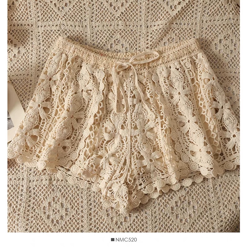 Tag : Piece Crochet Wool Bikini Set Zigzag Brapiece Mixed With Shorts And Flared Sleeve Mesh Top