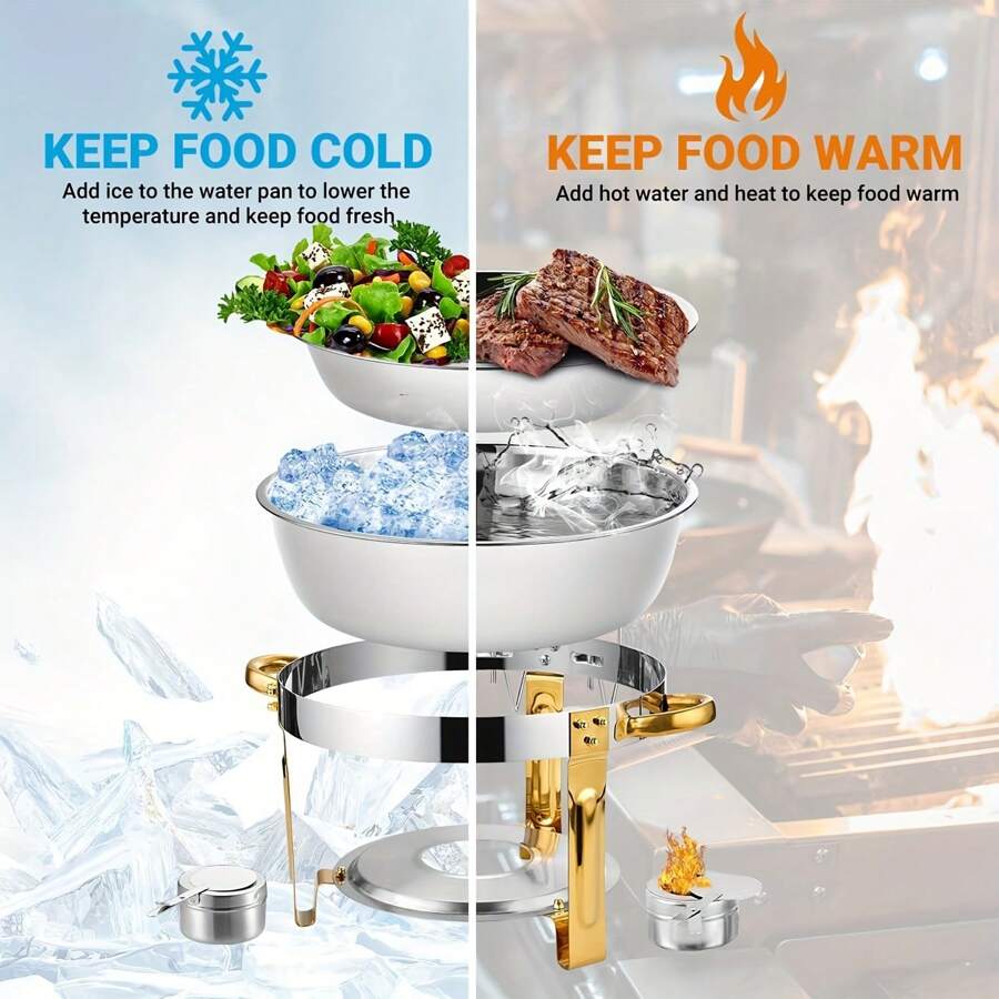 Piece Hot Pot Buffet Set Quart Round Buffet Hot Pot With Glass Cover And Lid Gold Stand 89523
