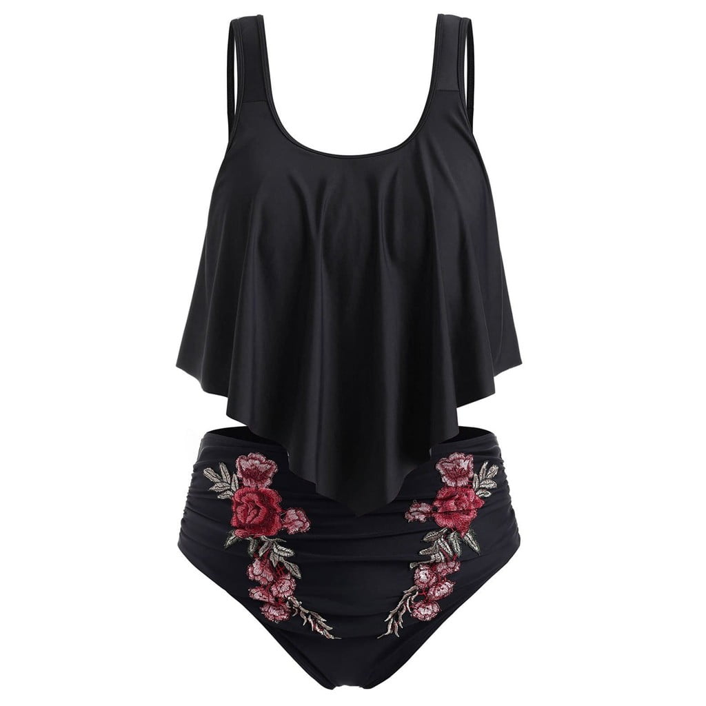 Piece Tankini For Women Push Up Padded Plus Size Overlay Print Bikini Swimsuit Beach Vacation