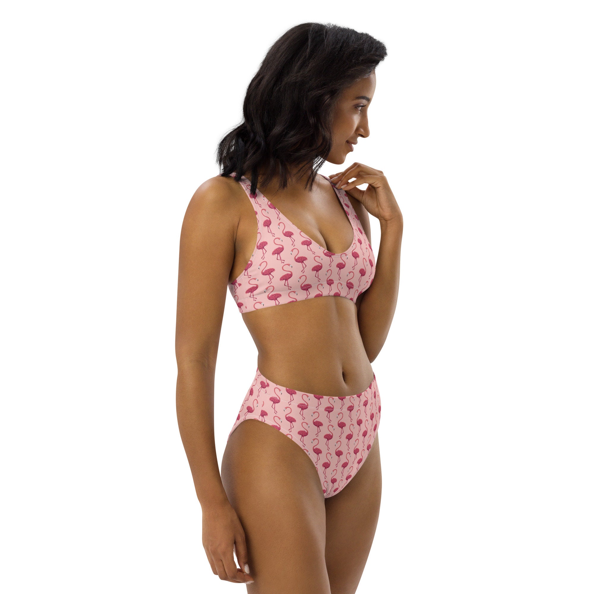 Pink Flamingos High Waisted Bikini Eco Friendly Recycled Material Gifts For Her Two Piece is a popular picture for sexy and hot.