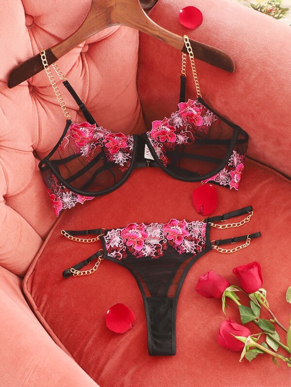 Plus Floral Embroidery Sheer Mesh Underwire Lingerie Set Shein Usa is a popular picture for sexy and hot.