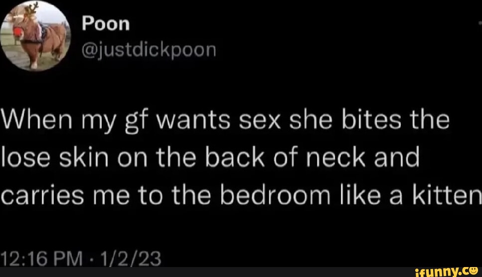 Poon Justdickpoon When My Gf Wants Sex She Bites The Lose Skin On The Back Of Neck And Carries is a popular picture for sexy and hot.