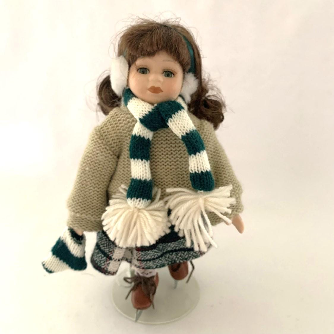 Tag : Porcelain Doll Ice Skater With Stand Brunette Hair Green Eyes Vintage Porcelain Doll Sweater