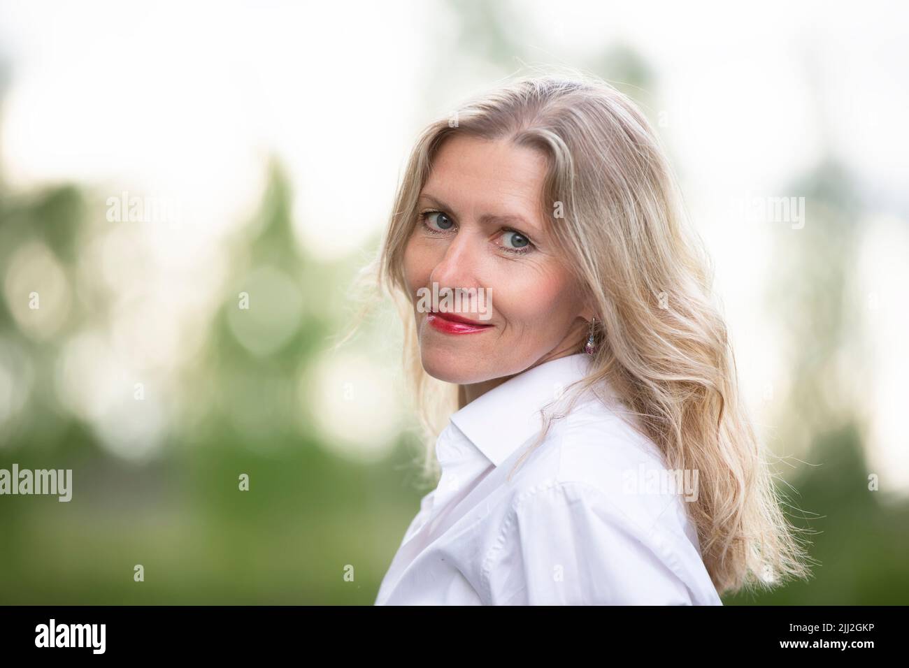 Tag : Portrait Of A Beautiful European Middle Aged Woman Fifty Year Old Blonde Woman With A Well