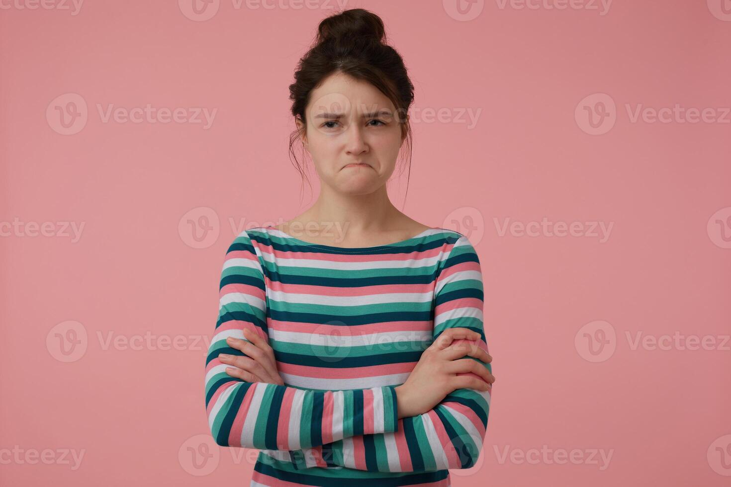 Portrait Of Attractive Disappointed Looking Girl With Brunette Hair And Bun Wearing Striped pictures has 500 x 400 · 50 kB · jpeg.