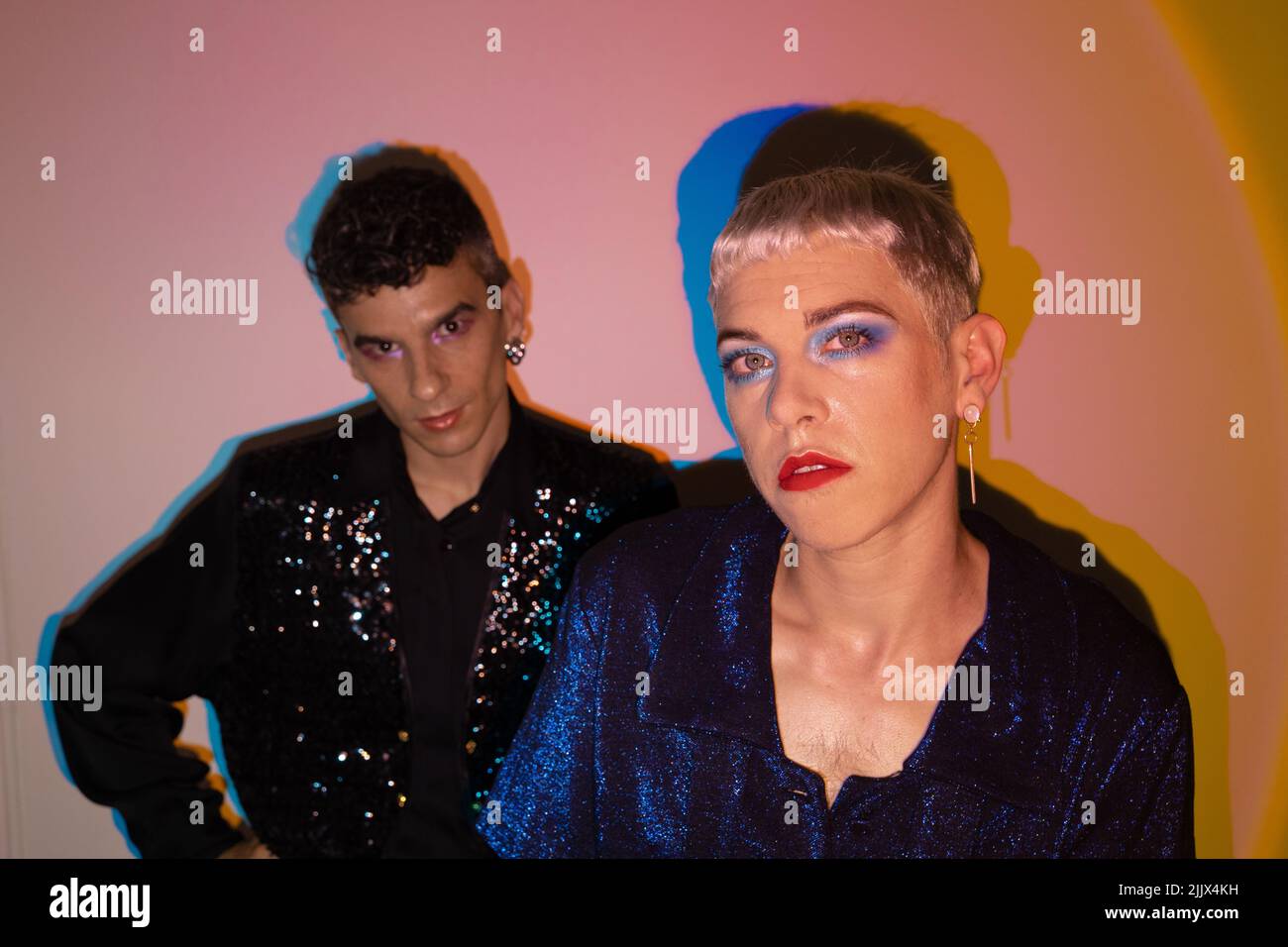 Tag : Portrait Of Gay Couple Wearing Makeup In Illuminated Studio Stock Photo Alamy