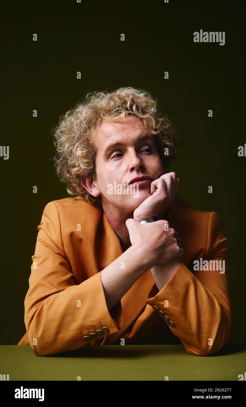 Portrait Of Gay Man With Hand On Chin Against Studio Backdrop For Pride Month Stock Photo Alamy is a popular picture for sexy and hot.