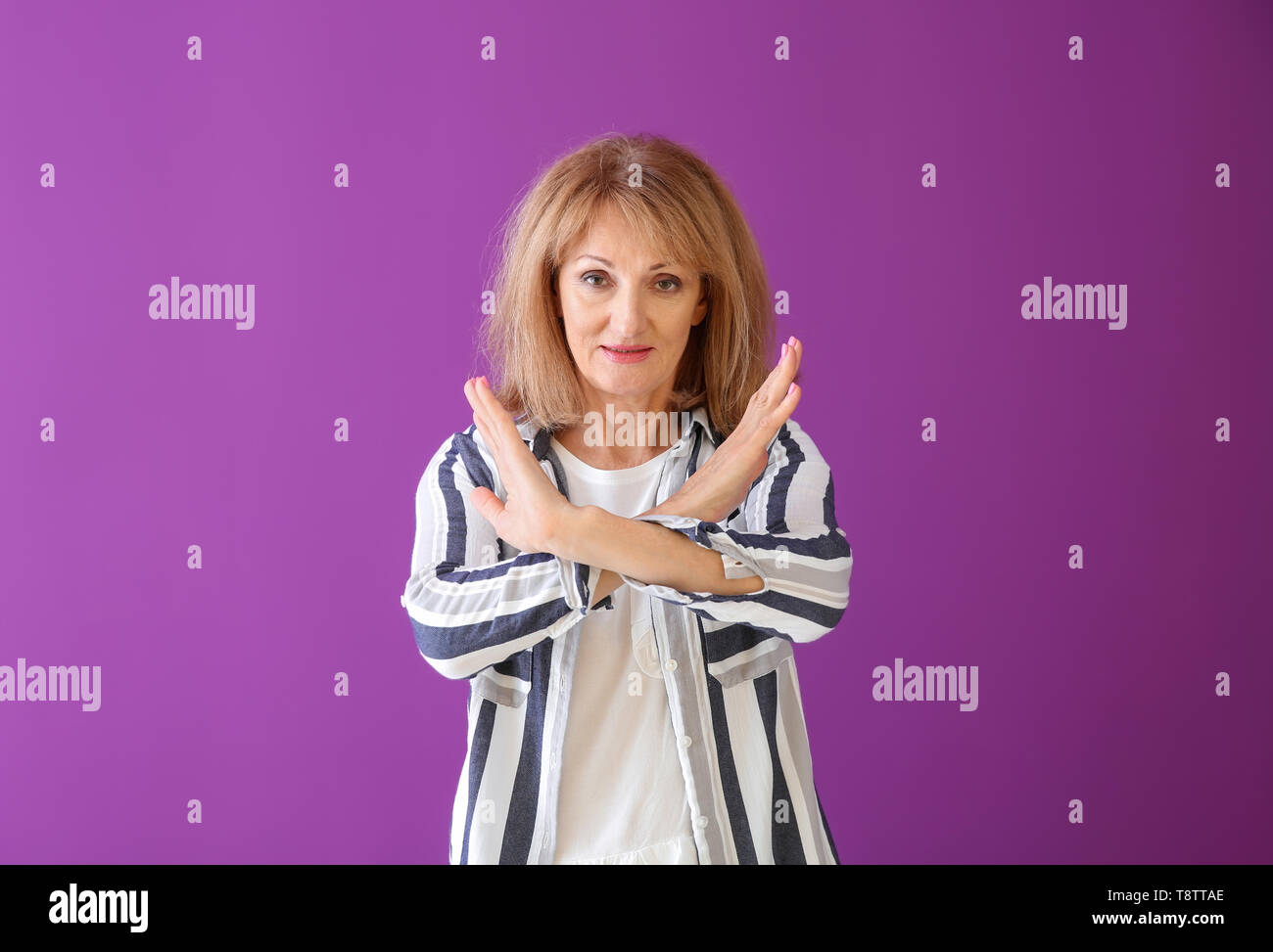 Tag : Portrait Of Mature Woman Rejecting Something On Color Background Stock Photo Alamy