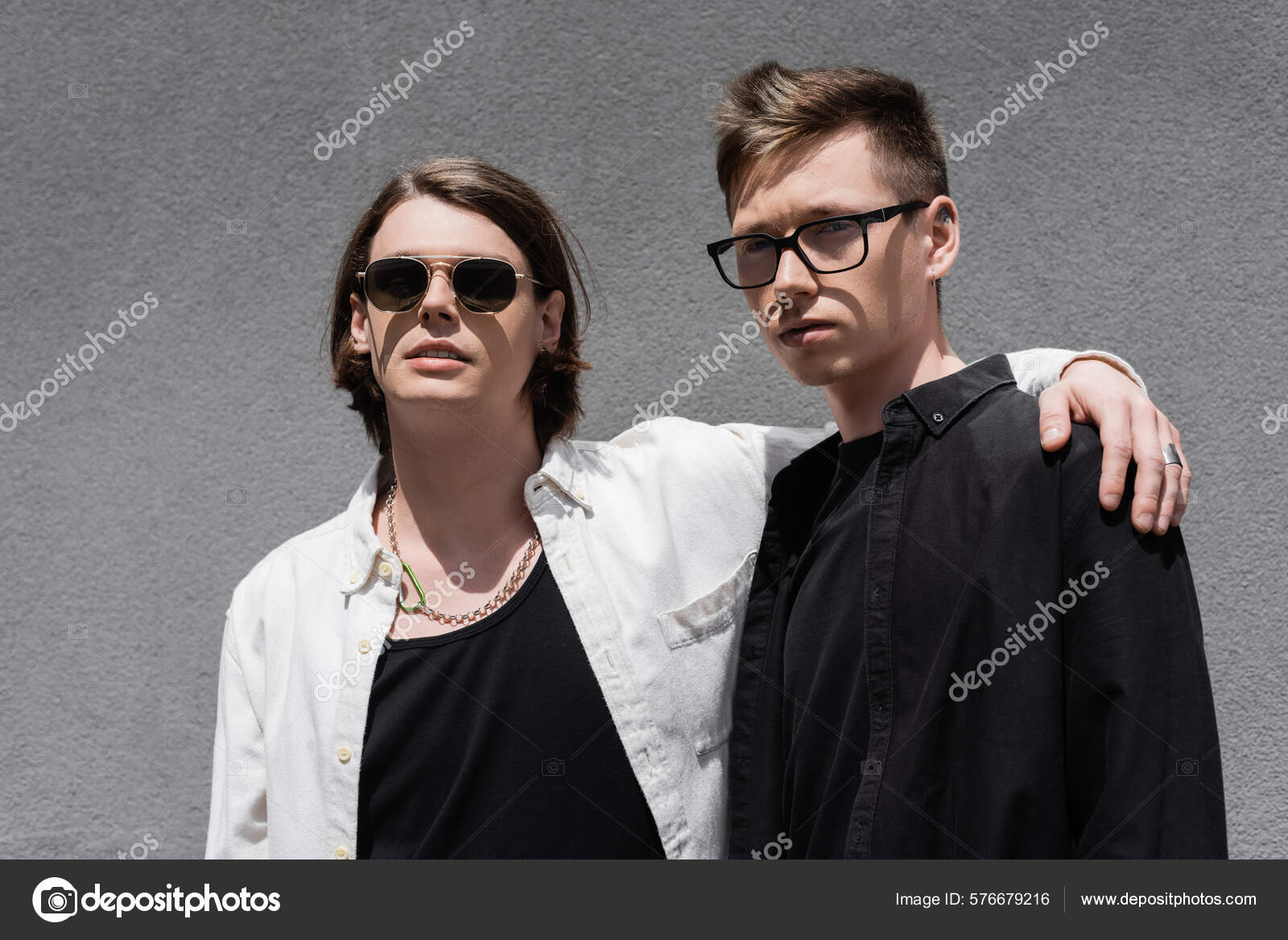 Tag : Portrait Stylish Gay Couple Hugging Building Outdoors Stock Photo By Igorvetushko