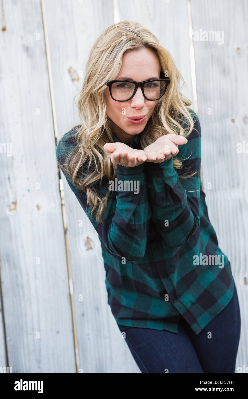 Pretty Blonde In Striped Shirt Blowing A Kiss Stock Photo Alamy is a popular picture for sexy and hot.