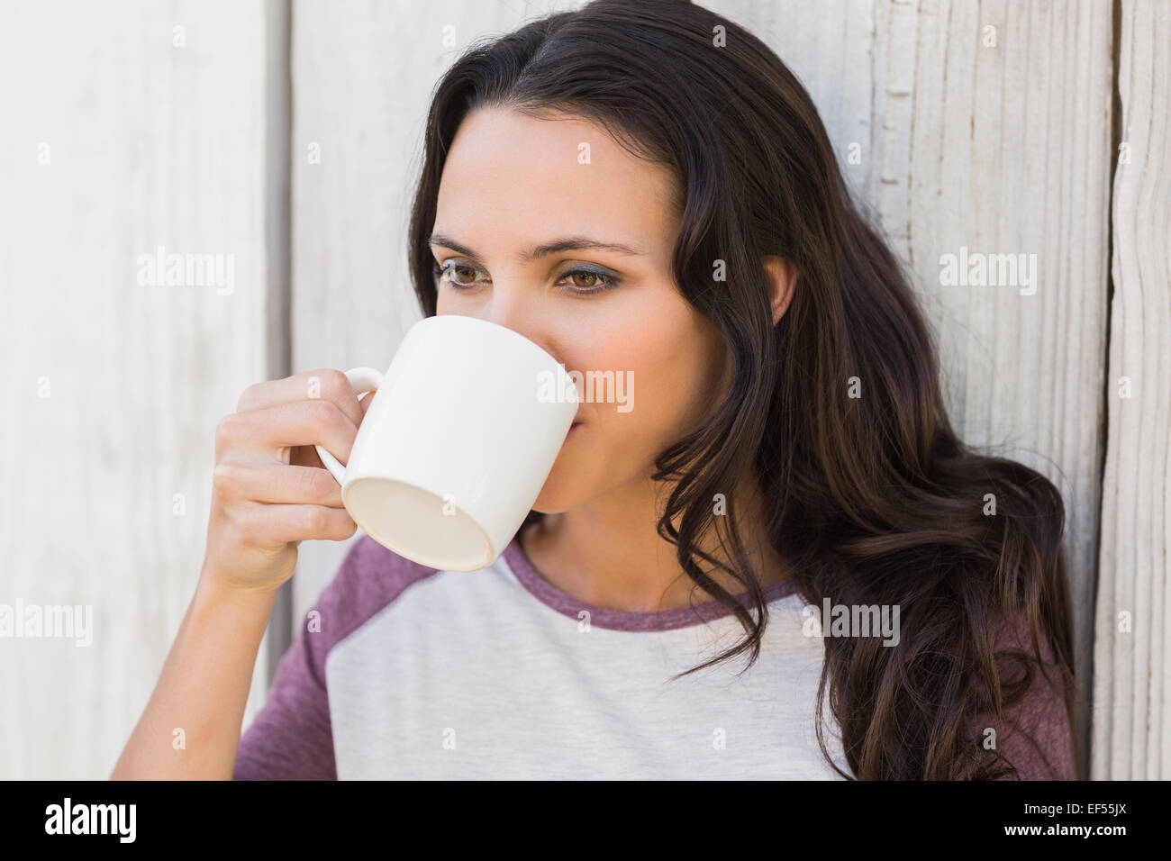 Tag : Pretty Brunette Drinking From Mug Stock Photo Alamy