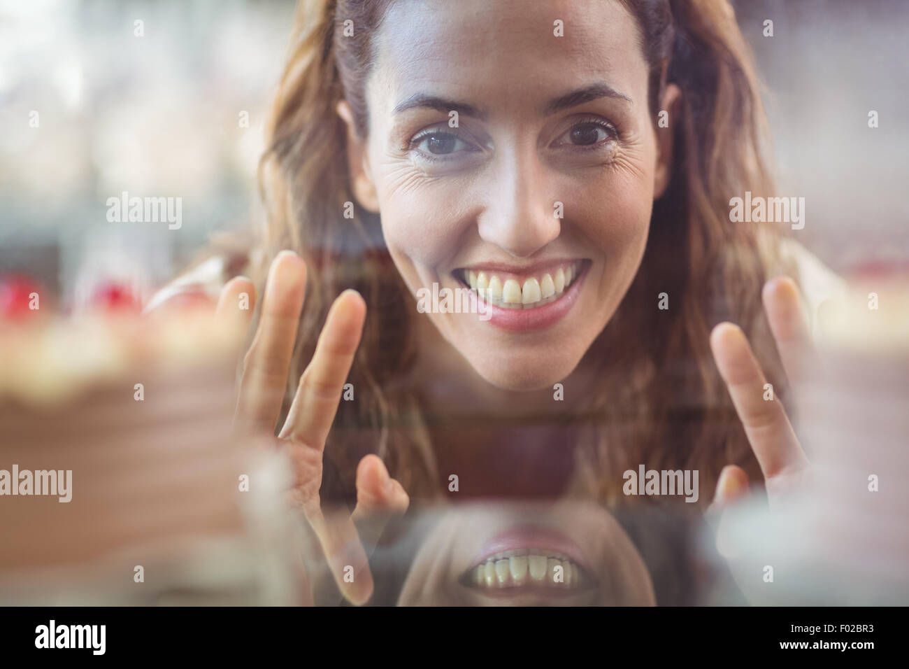Tag : Pretty Brunette Looking At Camera Through The Glass Stock Photo Alamy