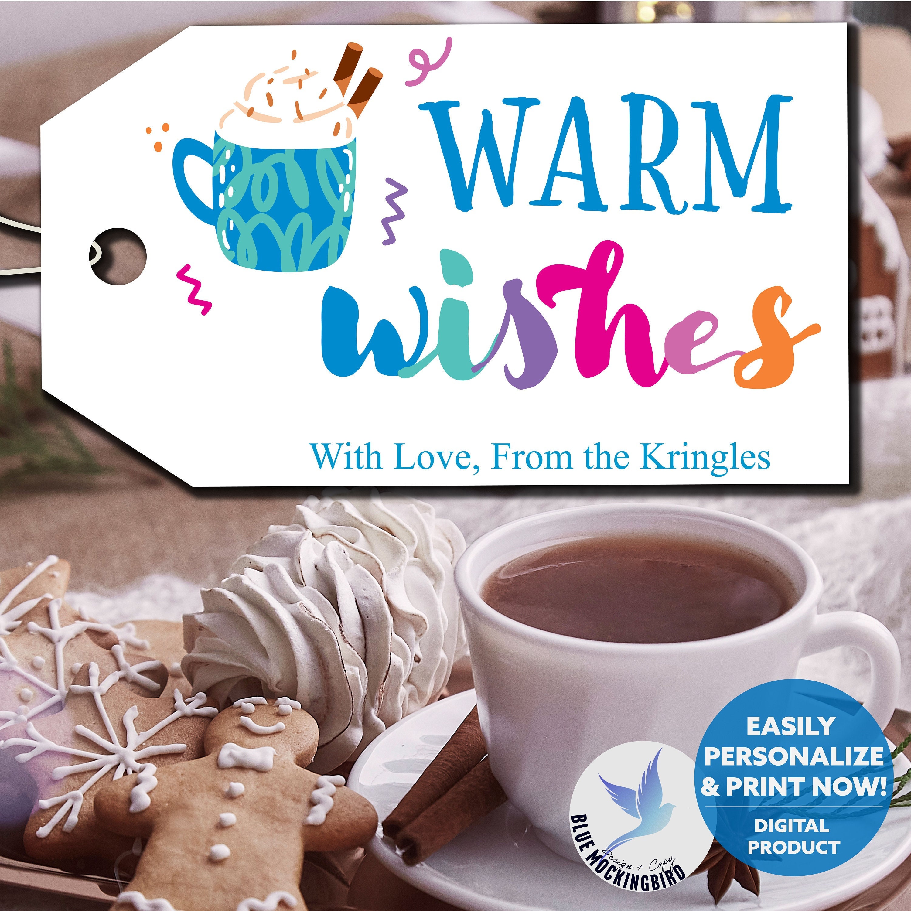 Tag : Printable Hot Cocoa Gift Tag Warm Wishes Gift Tag Christmas Etsy