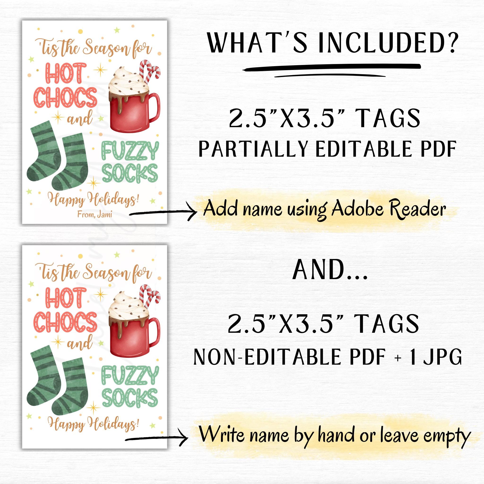 Printable Hot Cocoa Holiday Socks Gift Tag Personalized Tis The Season For Hot Chocs And
