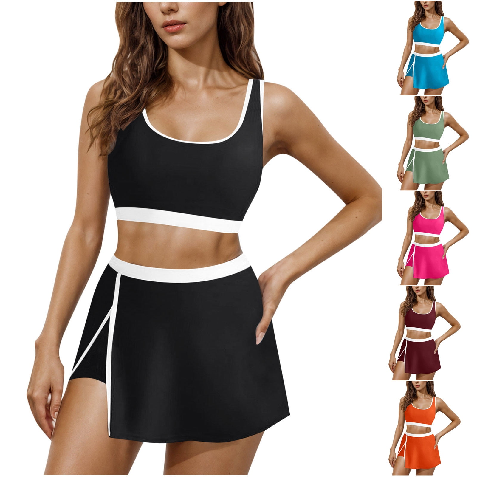 Pstuiky Swim Dress Women High Waisted Bikini Set Solid Color Conservative Swimsuit Fashionable