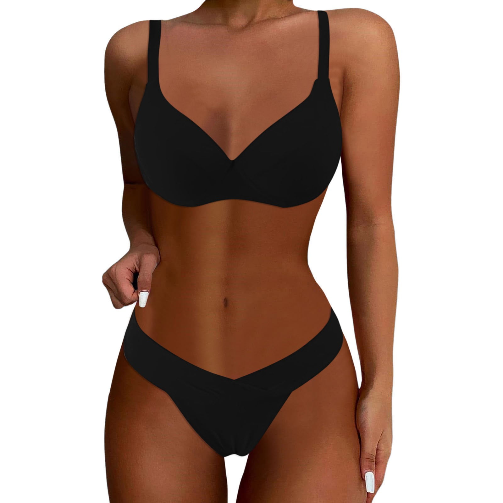 Qhfbli Bikini Set For Women Two Piece Swimsuits V Neck Low Rise Back Self Tie Spaghetti Straps is a popular picture for sexy and hot.