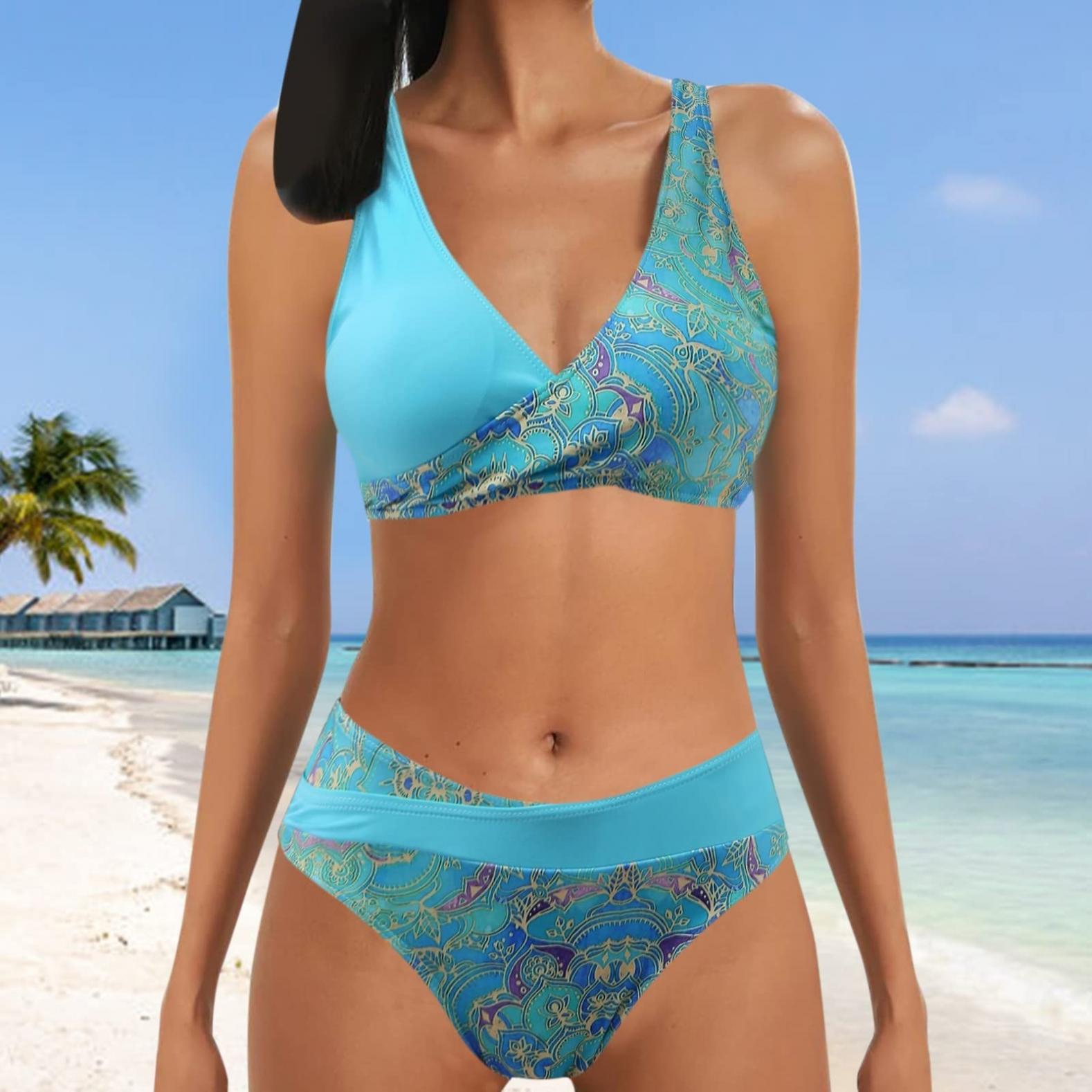 Qleicom Women S Swimsuits High Waisted Tummy Control Swimwear Printing Sexy Bikini Chest Pad is a popular picture for sexy and hot.
