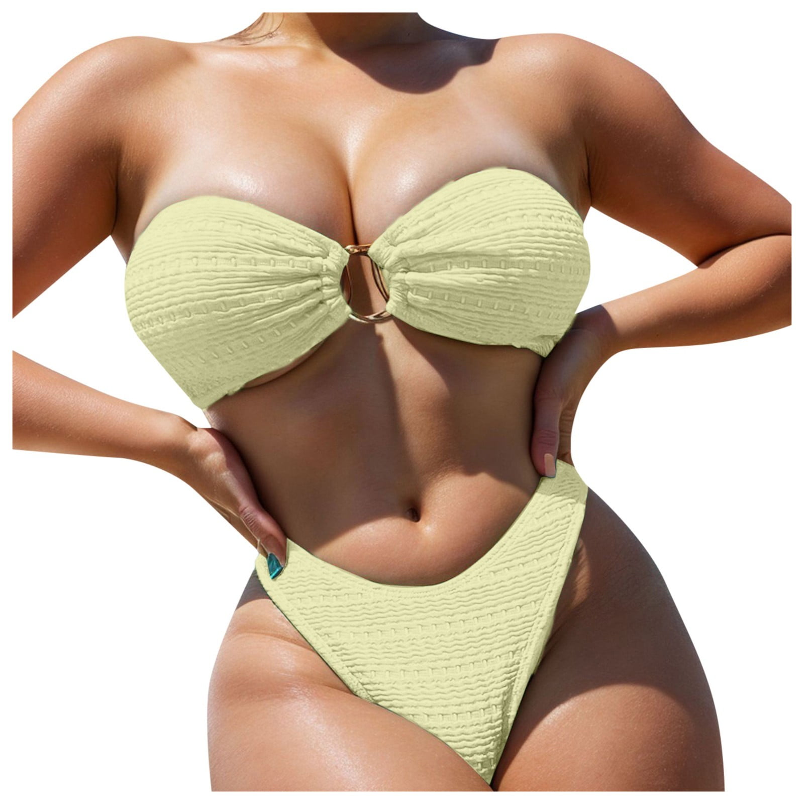 Qyzeu Plus Size Swimsuit For Women Bikini Solid Color Cute Bikini Swimsuit Two Pieces Bikini