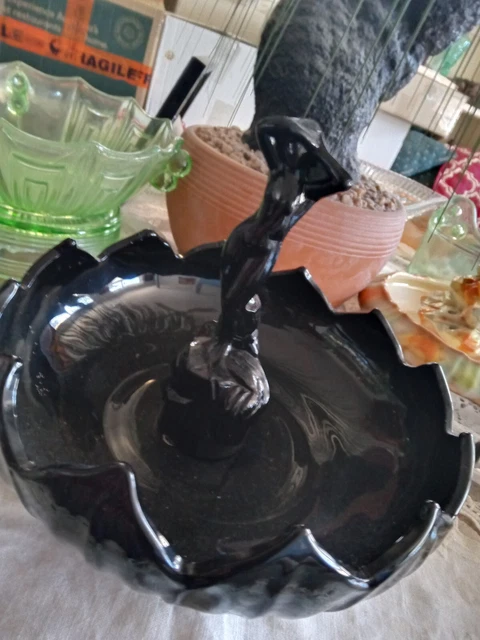 Tag : Rare Black Art Deco Glass Andromeda Nude Lady Float Bowl Depression Era S