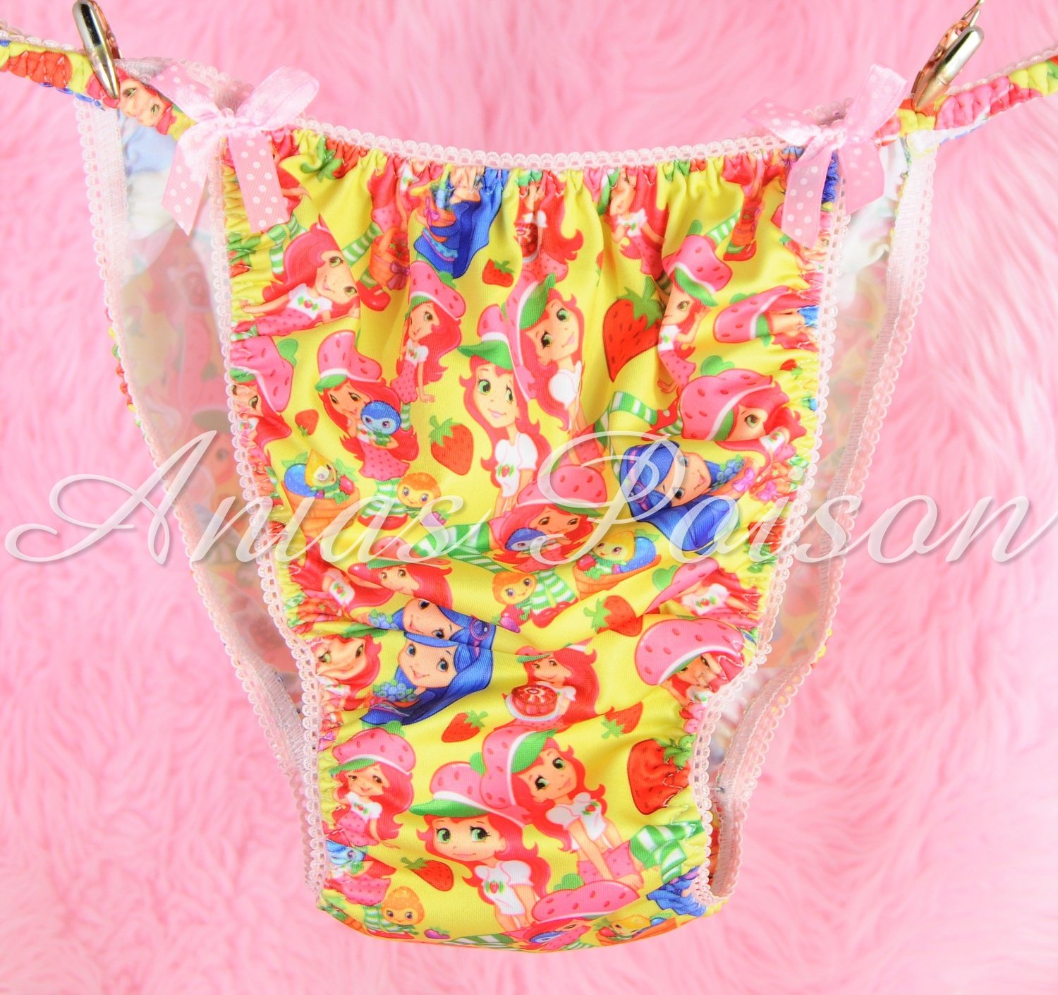 Rare Novelty Character Print Spandex Stretch String Bikini Strawberry Shortcake Princess Panties is a popular picture for sexy and hot.