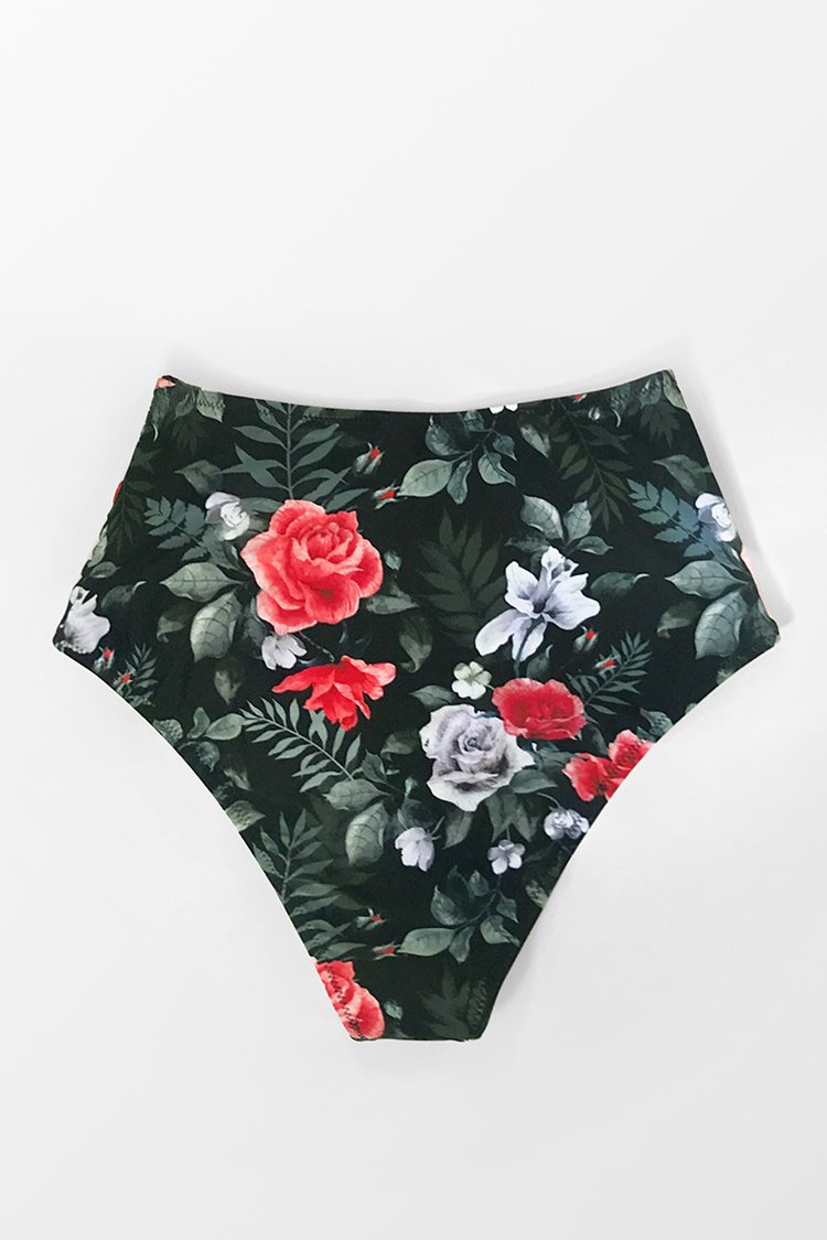 Red Floral High Waisted Bikini Bottom