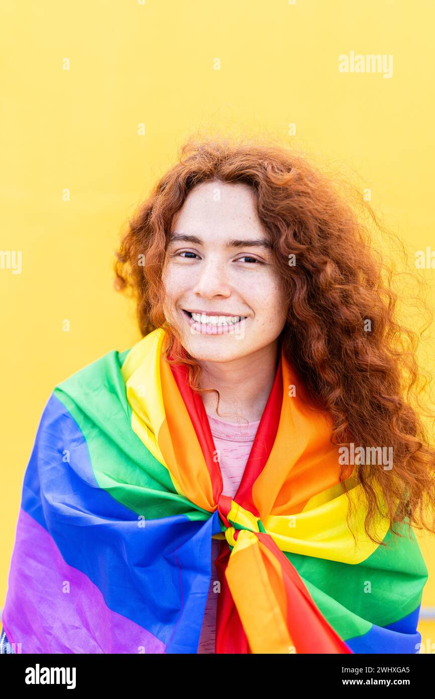 Tag : Red Haired Non Binary Gay Man With Rainbow Flag Over Yellow Background Stock Photo Alamy