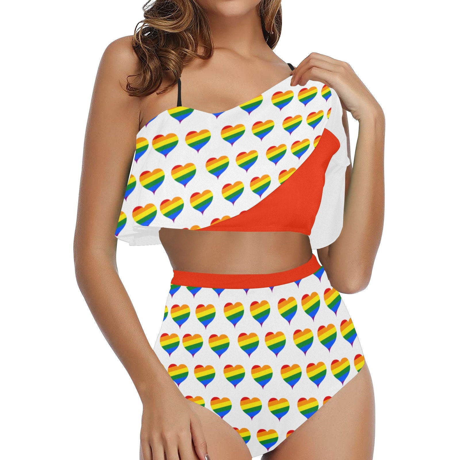 Tag : Red Lgbtq Rainbow Hearts High Waisted Flounce Bikini Set Etsy
