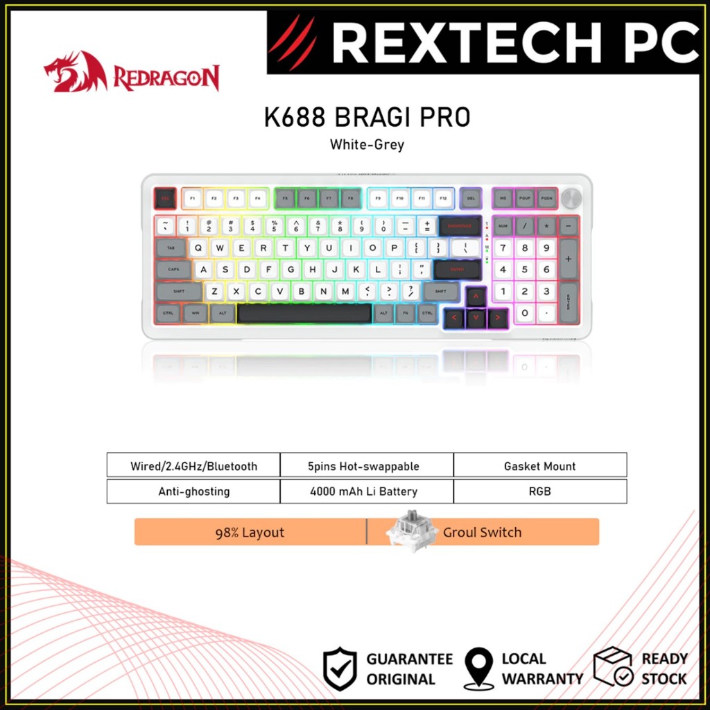 Tag : Redragon K Bragi Pro Wireless Gasket Mount Mechanical Keyboard Tri Mode Hot Swappable