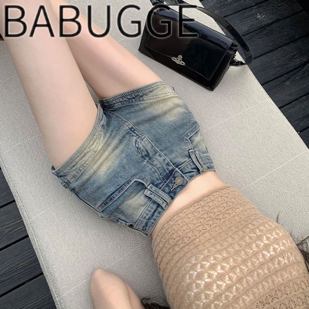 Tag : Retro Stretchy High Waist Denim Shorts Women Contrast Color Skinny Hip Lifting Ultra Short Hot
