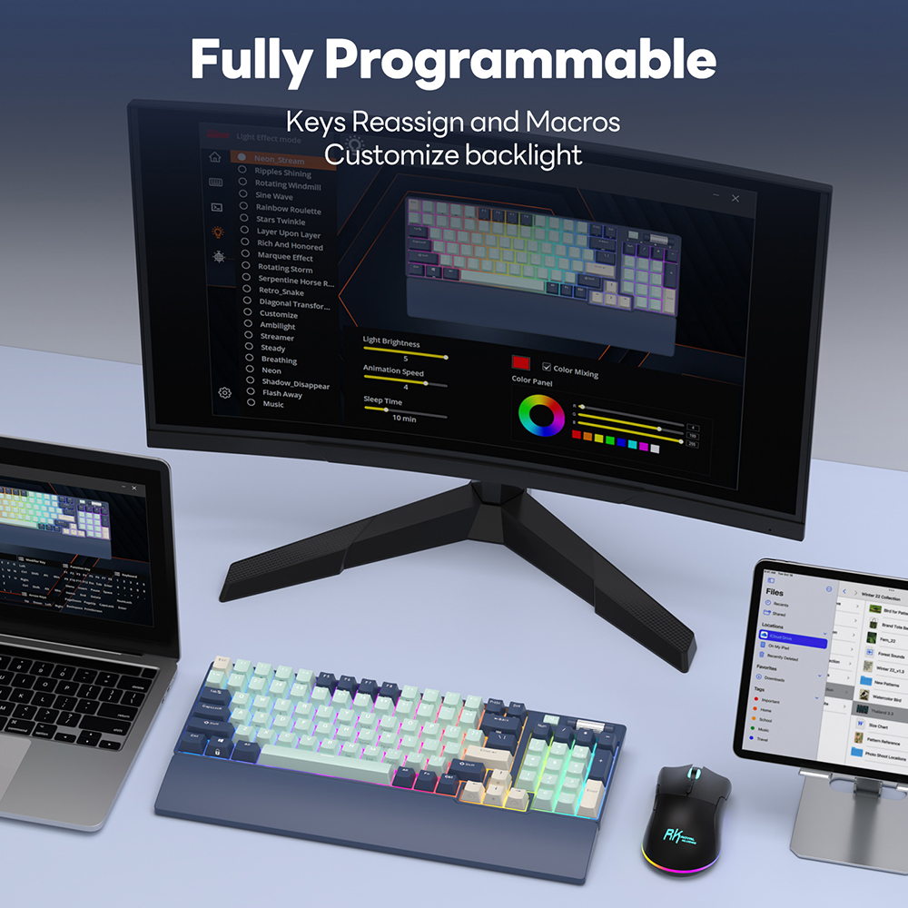 Rk Royal Kludge Rk Wireless Bluetooth Mechanical Keyboard Three Mode Rgb Hot Swap Gaming