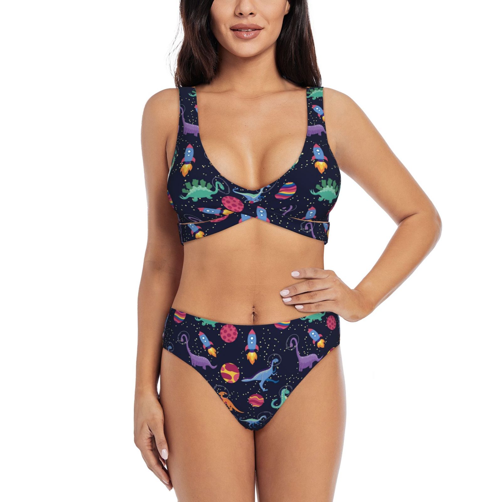 Rocae Space Dinosaur For Bikini Set For Women Two Piece Sexy High Swimsuits Split Crossover
