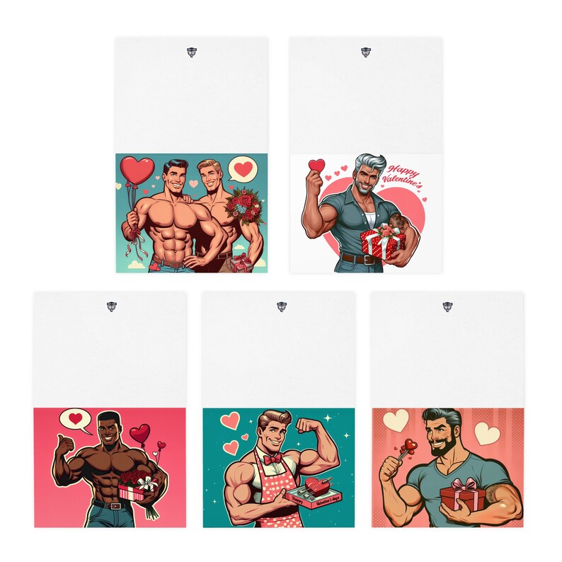 Tag : Romantic Retro Vintage S Style Multi Design Greeting Cards Pack Gay Muscular Handsome Men