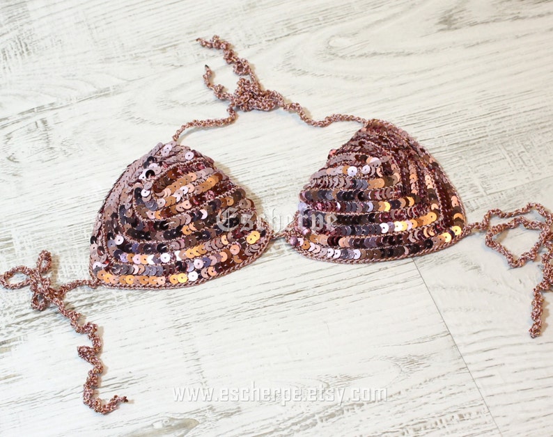 Rosa Oro Lentejuelas Ganchillo Brasile O Bikini Mujeres Traje De Ba O Traje De Ba O De Dos is a popular picture for sexy and hot.