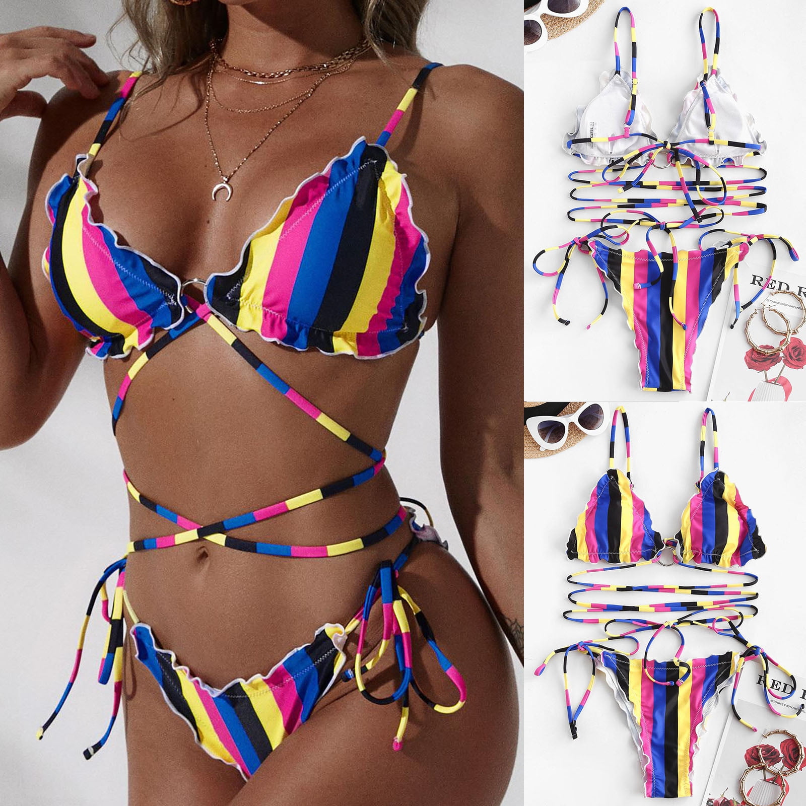 Ruimatai Womens Bikini Swimsuit Bathing Suit Modest Tankini Women S Print Set Swimsuit Two Piece 120960