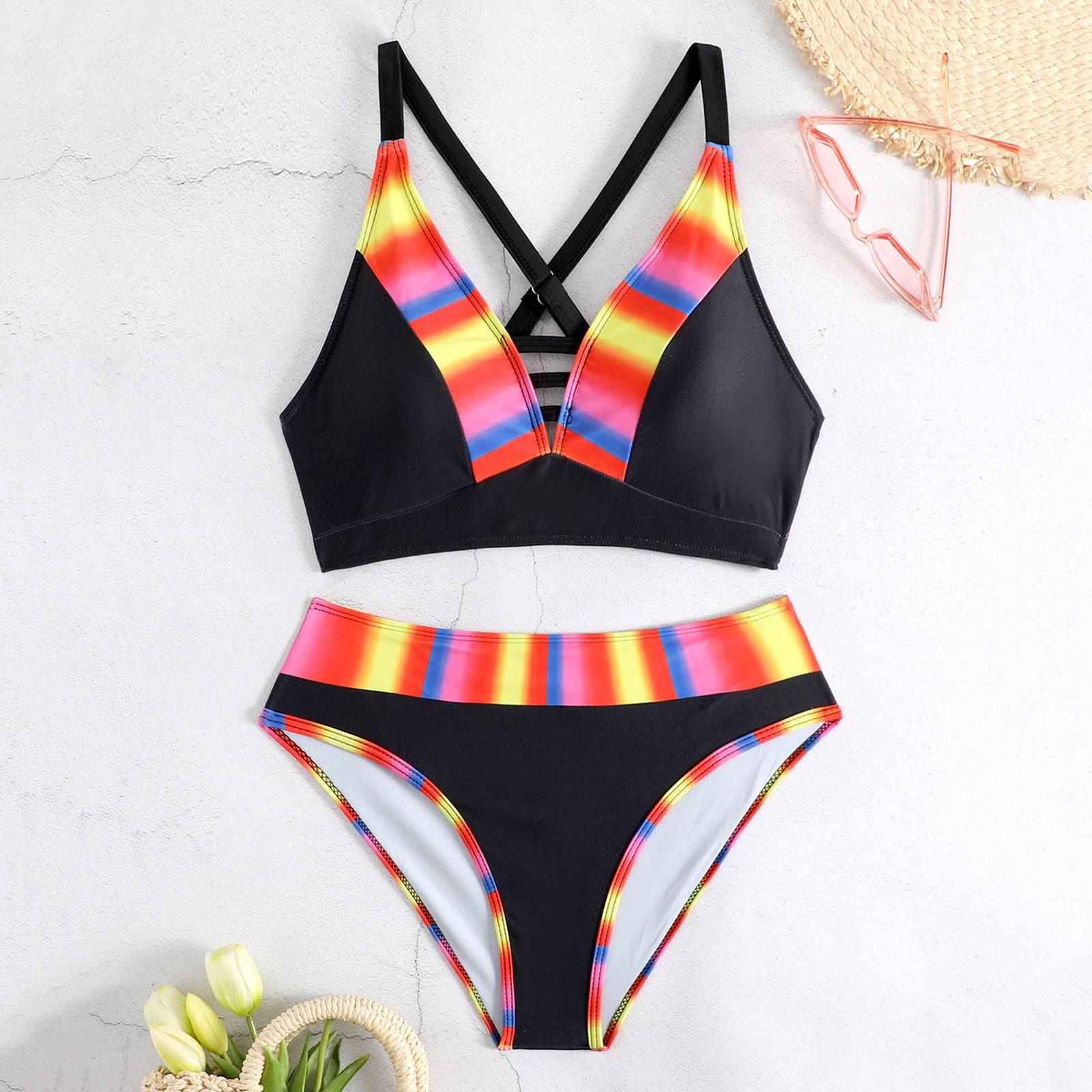 Runfenguu Swimsuit Bikini Big Girls Swimsuitswomen S Color Block Print Fashion Soft Back Buckle is a popular picture for sexy and hot.