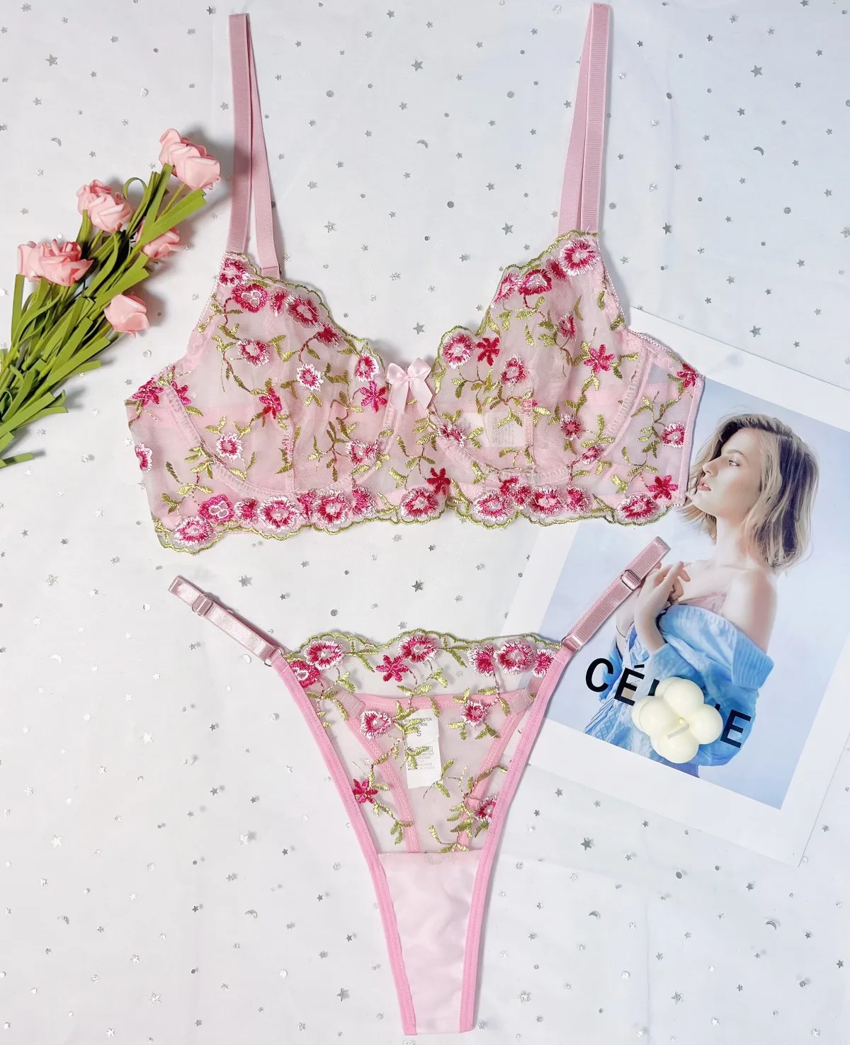 Tag : Russia Belarus Tajikistan Uzbekistan Turkey Pink Embroidery Bra And Briefs Undergarment Lingerie Set