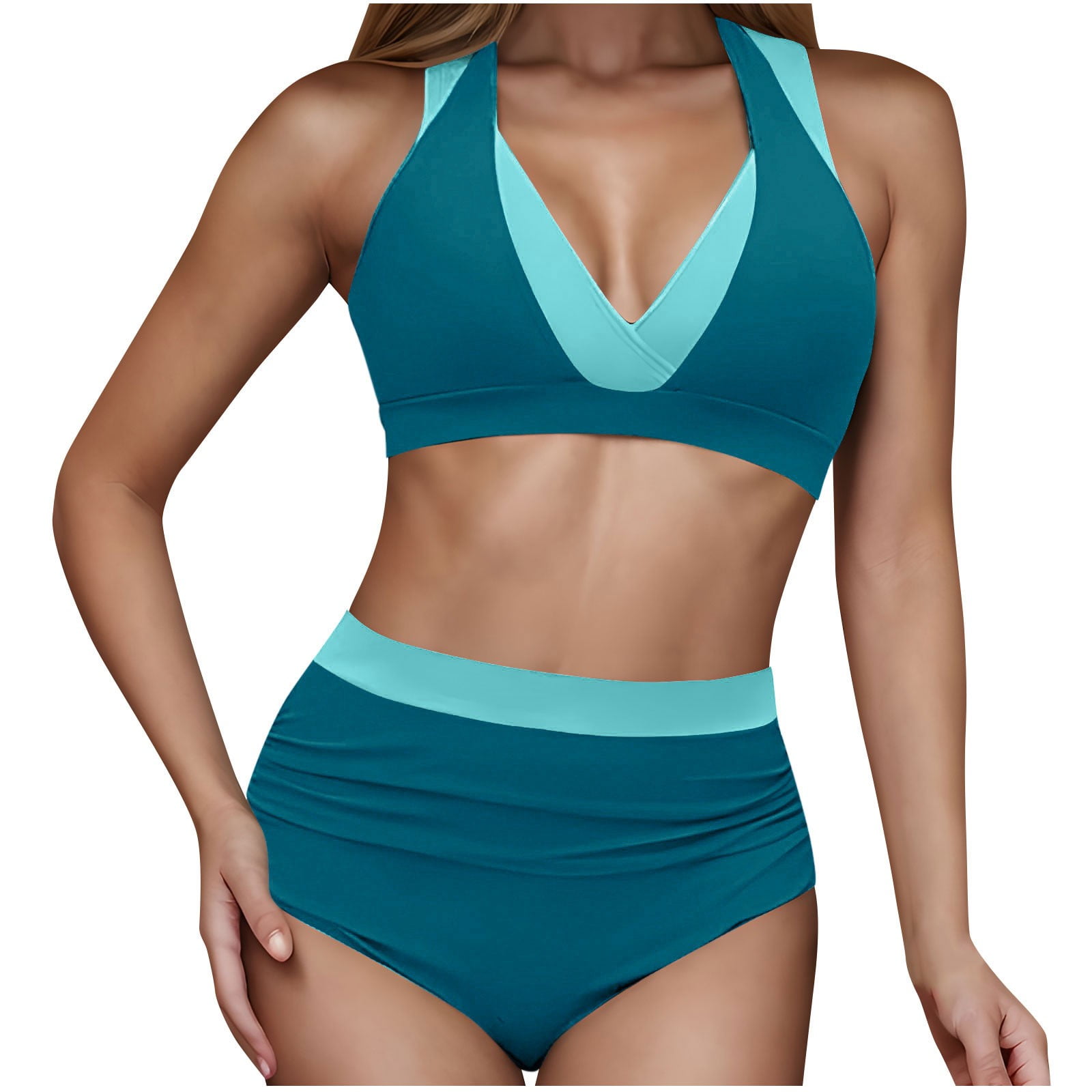 Rydcot Women S High Waisted Bikini Sets Tummy Control Swimsuits Two Piece Color Block Adjustable is a popular picture for sexy and hot.