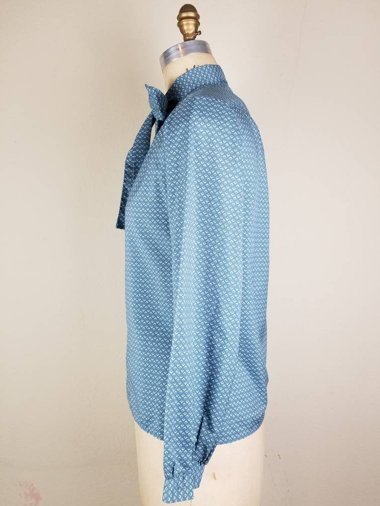 S High Necked Pussy Bow Victorian Blouse Edwardian Cornflower Blue Polyester is a popular picture for sexy and hot.