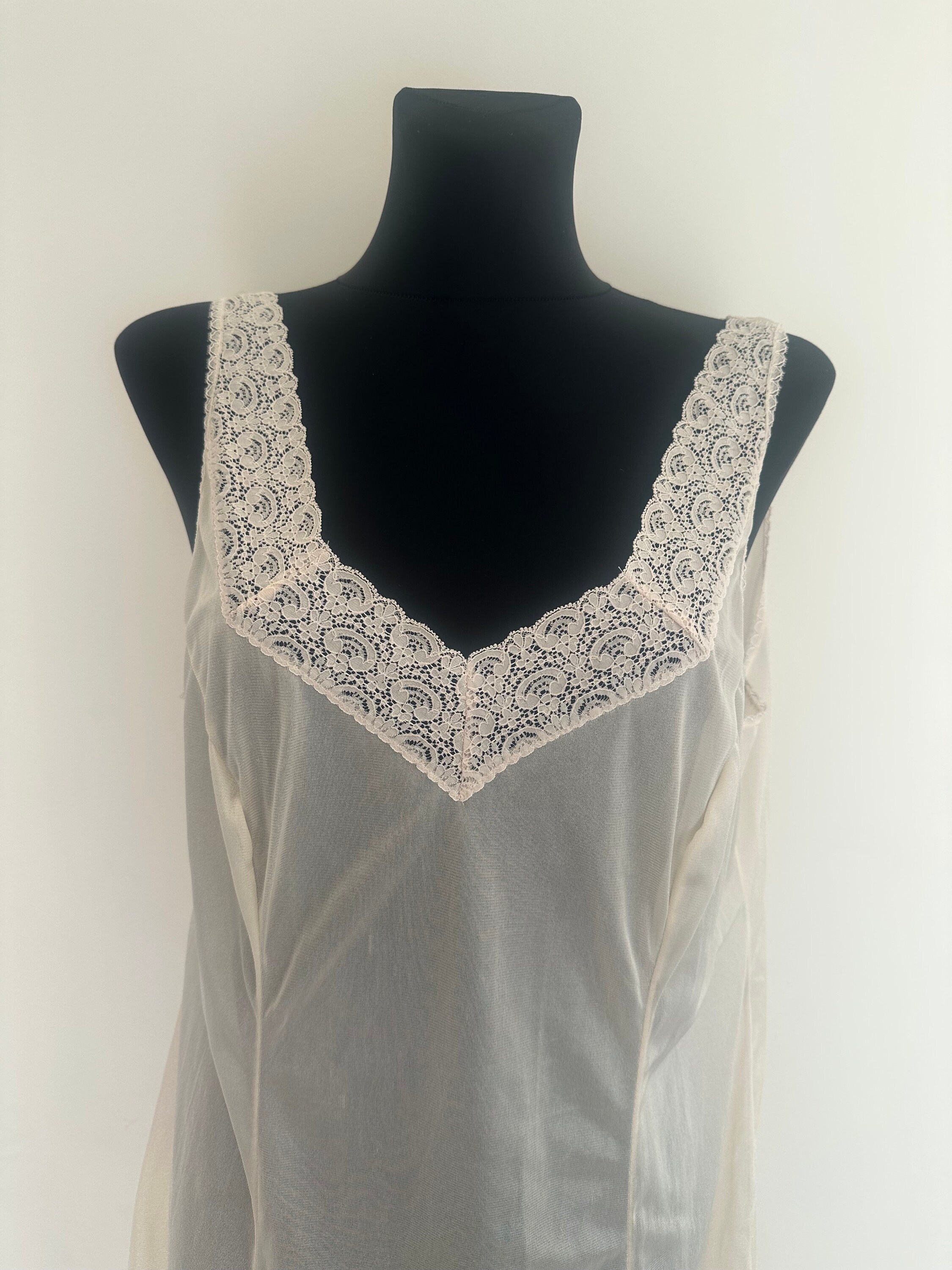 Tag : S Soviet Vintage Full Slip Negligee Beige Nylon Lace Lingerie Underwear Nightgown Sexy