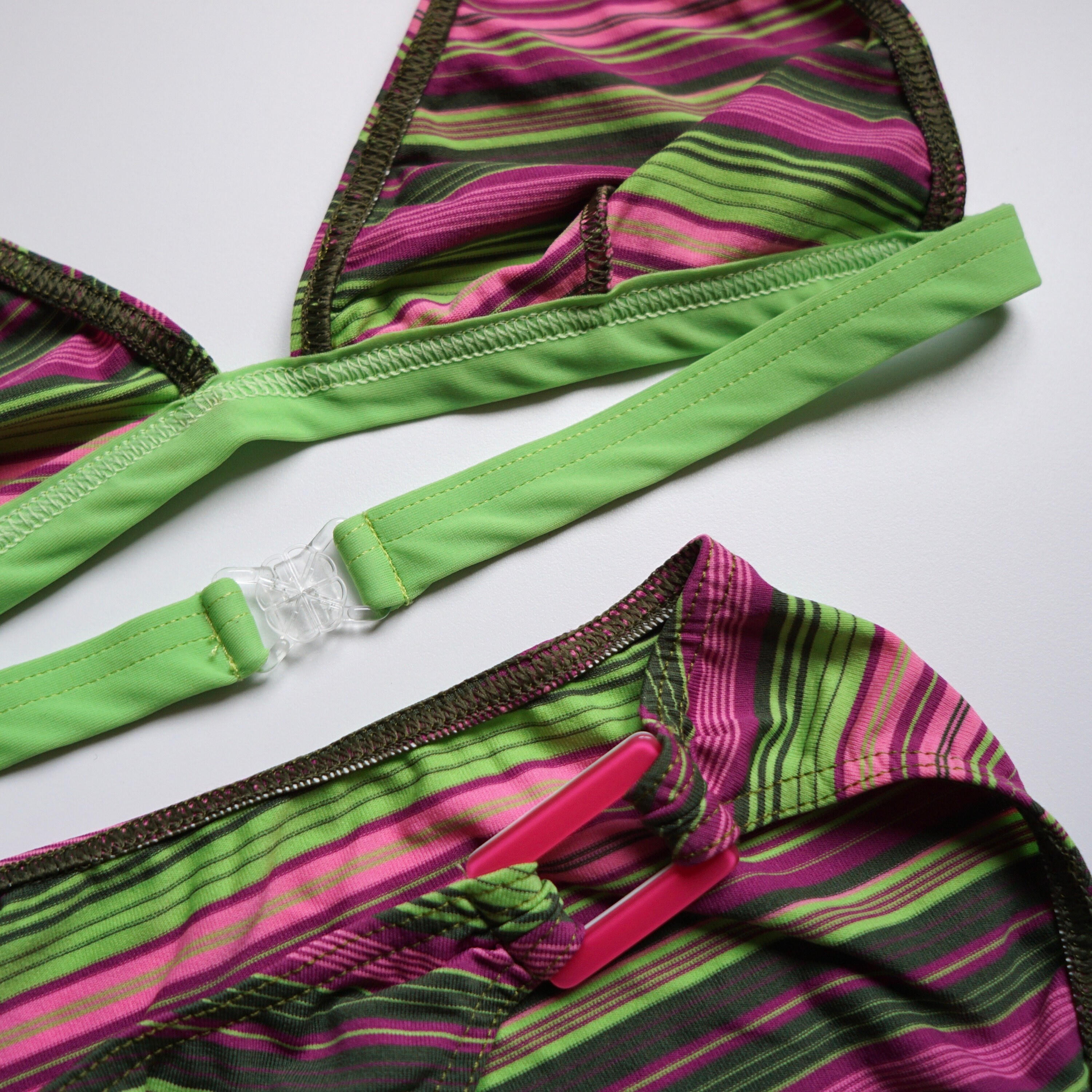 Tag : S Y K Green Pink Striped High Cut Triangle Bikini Set Etsy